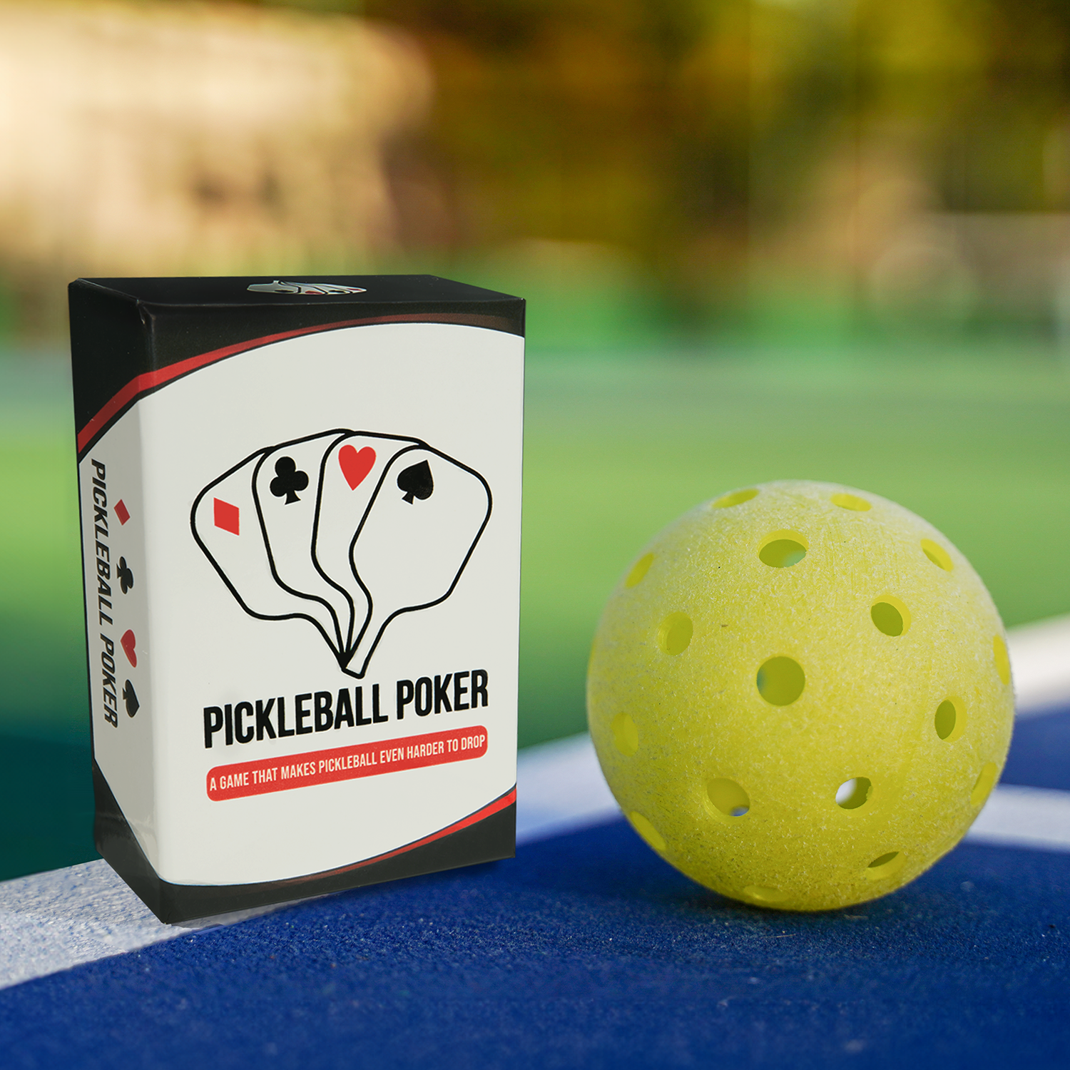 Pickleball Poker was developed as a fun training aid for pickleball. It's a game of rewards, penalties, and pickleball.