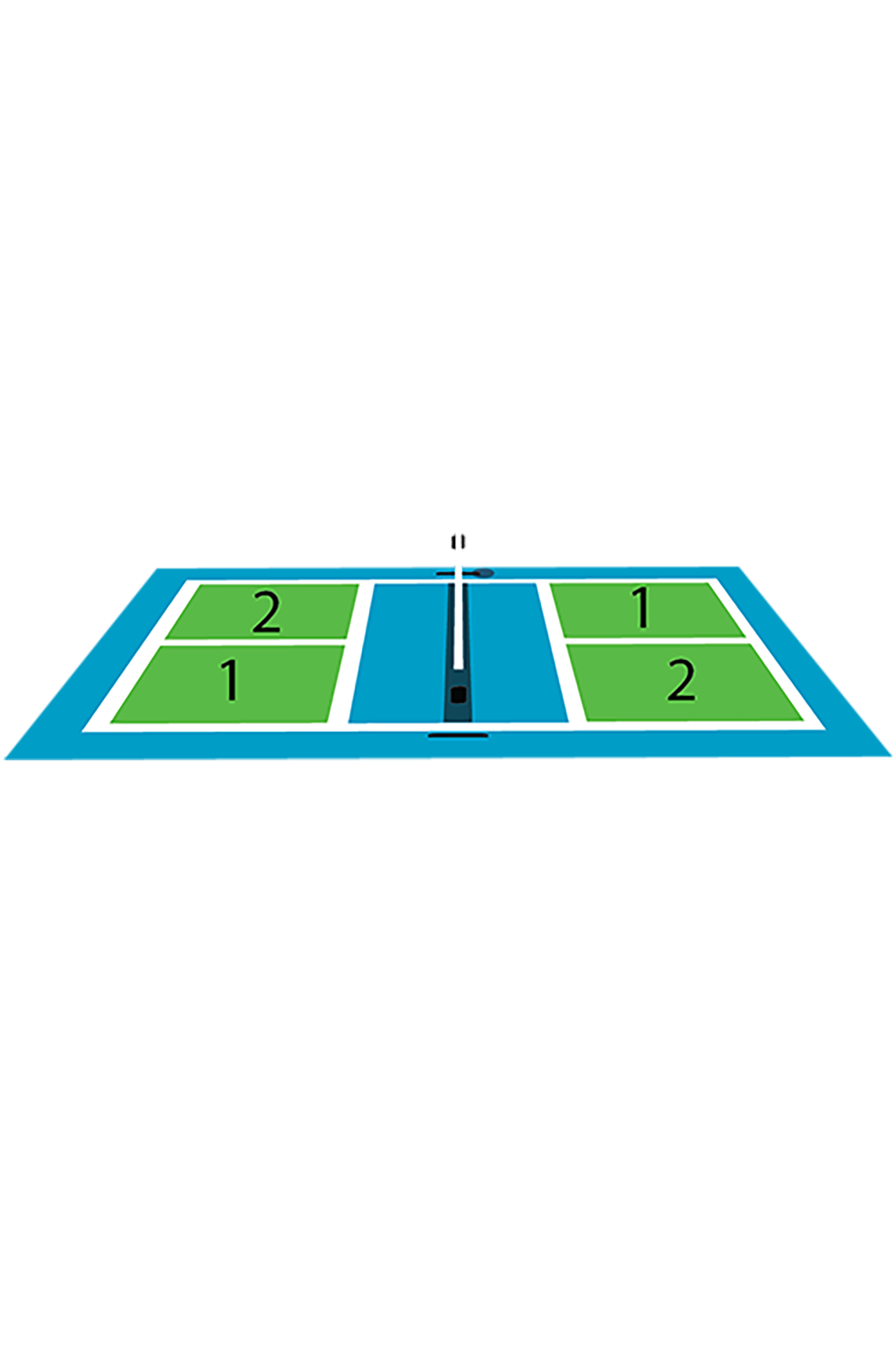 - Serve diagonally crosscourt into the opposite diagonal court.